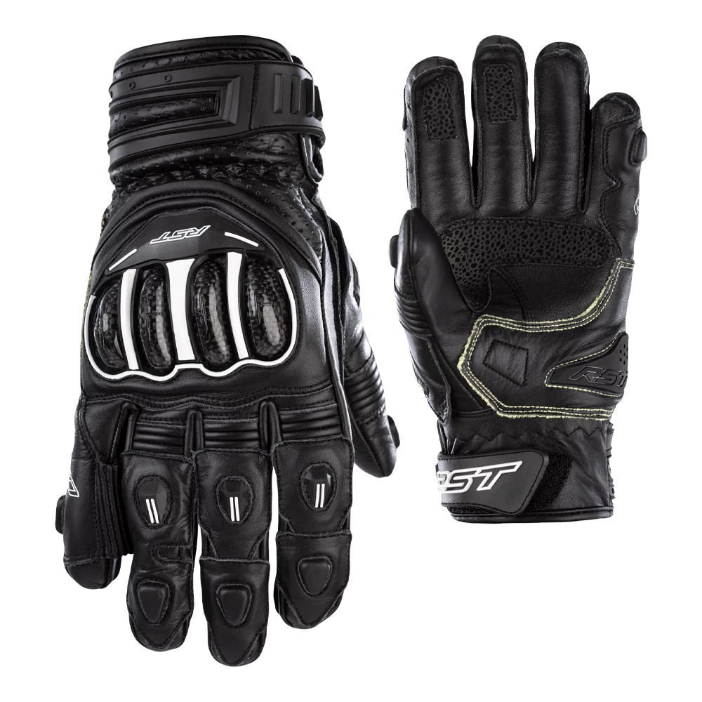 Made with both full-grain cowhide and kangaroo leather, the glove features a CE Level 1 Carbon Knuckle Protector for impact protection. DuPont™ Kevlar® Fibre on the palm stitching and underlay, along with double layer kangaroo leather and an RST palm slider protect the palm in the event of a high speed slide. Elasticated conjoined fingers to prevent “finger roll” without affecting reach or flexibility when changing gear and the hook & loop closure offers a secure fit.
